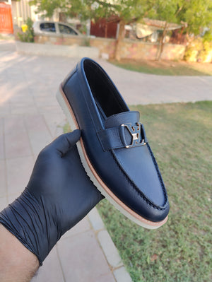 Experience the perfect blend of luxury, style, and comfort with our LV Loafers. Crafted from premium original leather, these loafers are designed for individuals who appreciate sophisticated fashion with everyday comfort. The deep navy blue color, enhanced with an elegant metallic LV emblem, makes these loafers a must-have for formal and casual wear.
