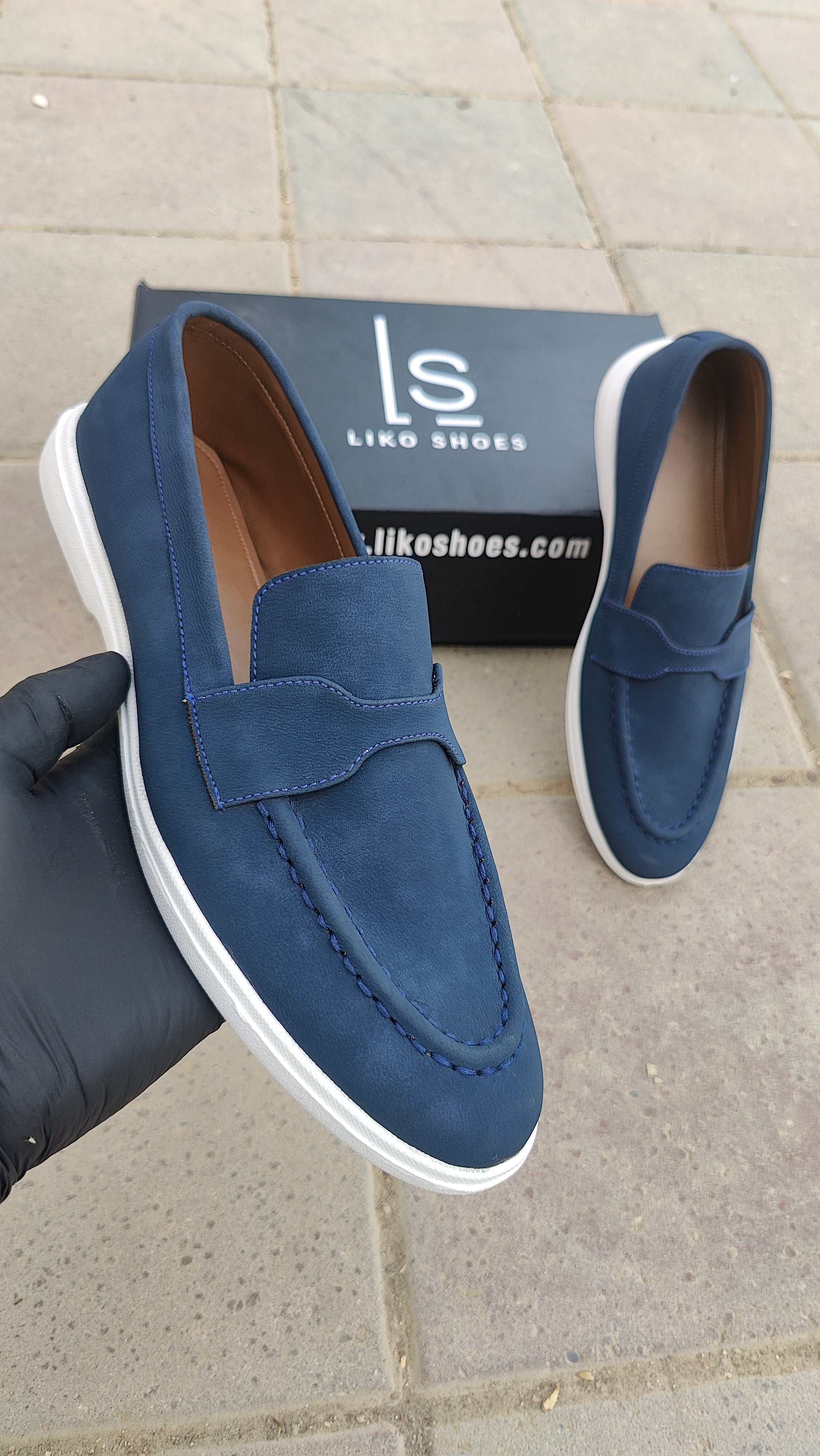 navy blue harmes loafer