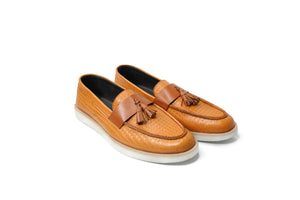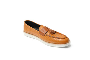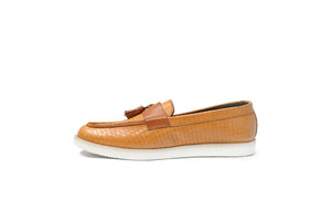 Upgrade your footwear collection with the Yellow Albra Loafers, a perfect combination of elegance, comfort, and durability. Crafted from 100% original leather, these premium tan-colored loafers feature a textured crocodile pattern with stylish tassels, making them an excellent choice for both formal and smart-casual occasions.